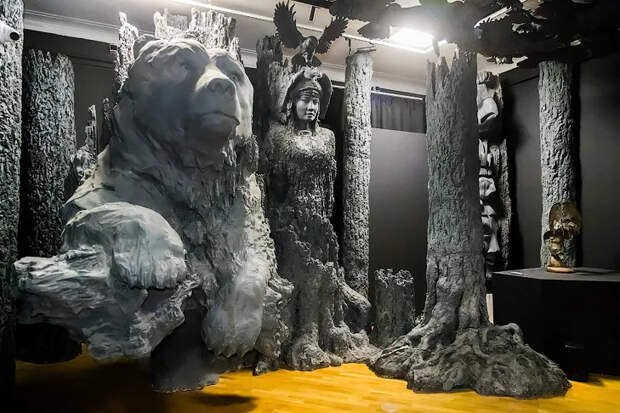 Для самой необычной археологической выставки полностью преобразили музейное пространство. В залах появились медведи и ритуальные деревья, под потолком шевелятся стаи сов, а посетителей встречает древняя жительница Сибири и человекоптицелось. Как рассказал VN.ru куратор выставки, археолог, кандидат исторических наук Василий Новиков, человекоптицелось — это один из самых популярных образов, характерных для пермского звериного стиля, считался оберегом у древних жителей Урала и Сибири. Подлинные бронзовые пластины с изображением человекоптицелося также представлены на выставке. «Чаще всего эти предметы использовались в виде амулетов и оберегов. Поэтому они у нас при входе стоят в качестве охранителей. В христианскую эпоху такой оберег совершенно точно мог ассоциироваться с чёртушкой – у него и копытца, и рога есть. Но по факту это такой ангел-хранитель с птичьими крыльями», – говорит Василий Новиков. © Фото VN.ru. По словам куратора выставки, образ человекоптицелося встречается исключительно в России. Он, как и большая часть экспонатов – эндемики. Аналогов пермскому звериному стилю и другим сибирским артефактам просто нет. Сибирская архаика до сих пор вдохновляет современных художников. Скульптуры знаменитого Даши Намдакова органично вписались в пространство выставки. При этом безвестные древние творцы сопоставимы по уровню мастерства с признанными шедеврами мирового искусства. © Фото VN.ru. Так, в одной из древних бронзовых пластин узнается картина Эдварда Мунка «Крик». «Это плоскостное изображение шамана, который находится в некоем действии. Четко показано, что шаман поет, у него вращаются глаза. То есть, древний художник делает то же, что и Мунк. Мы его называем гением, считаем, что «Крик» — это шедевр. А это одна и та же работа, один и тот же подход. Только между ними бездна времени – больше трех тысяч лет», – объясняет Василий Новиков. © Фото VN.ru. Помимо Мунка в древних артефактах нашли и предвестника Леонардо да Винчи. Гипсовое лицо прекрасной древней женщины железного века не уступает по красоте Моне Лизе. Знаменитую тесинскую погребальную маску в рамках выставки «Сны Сибири» можно увидеть только в Новосибирске. Она хранится в фондах института археологии и этнографии СО РАН и не вывозится из города. Впервые её можно разглядеть в идеальном музейном свете. «Погребальная маска из гипса, но при этом она очень живая, напоминает античную скульптурную традицию. По сути, это возможность заглянуть в глаза человеку раннего железного века. Тесинская маска – своеобразная Мона Лиза Новосибирска, которую можно прийти и посмотреть, не улетая в Париж. Она – безусловный шедевр», – уверен куратор выставки. «Сны Сибири» называют революцией в музейном деле. Так археологические артефакты еще не показывали – над выставкой работала целая команда художников, композиторов и музейщиков. Часть экспонатов можно трогать, а музыка, свет и запах должны погрузить в атмосферу сибирских лесов и степей. Вся эта древняя хтонь и архаика призвана рассказать о высочайшем уровне искусства исчезнувшей цивилизации. Как заявляют авторы проекта, для многих россиян из европейской части страны это настоящее открытие Сибири. «Мы хорошо знаем внешнюю историю, египетскую и крито-микенскую цивилизацию. Кого не спроси, все всё знают. А то, что происходило в Сиб