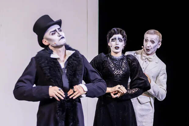 Водевиль, оперетту и черно-белое кино смешали в одном флаконе постановщики спектакля «Медведь» в театре юных зрителей имени Брянцева. Материал пьесы -шутки Чехова позволил применить множество театральных приемов и соединить их с эстетикой немого кино. В условное кинотеатральное пространство зрители попадают, как только оказываются в зрительном зале.